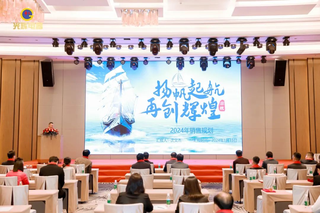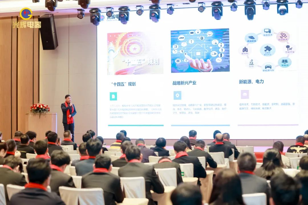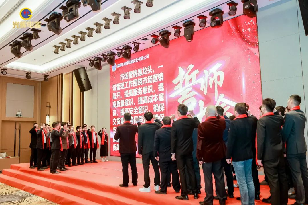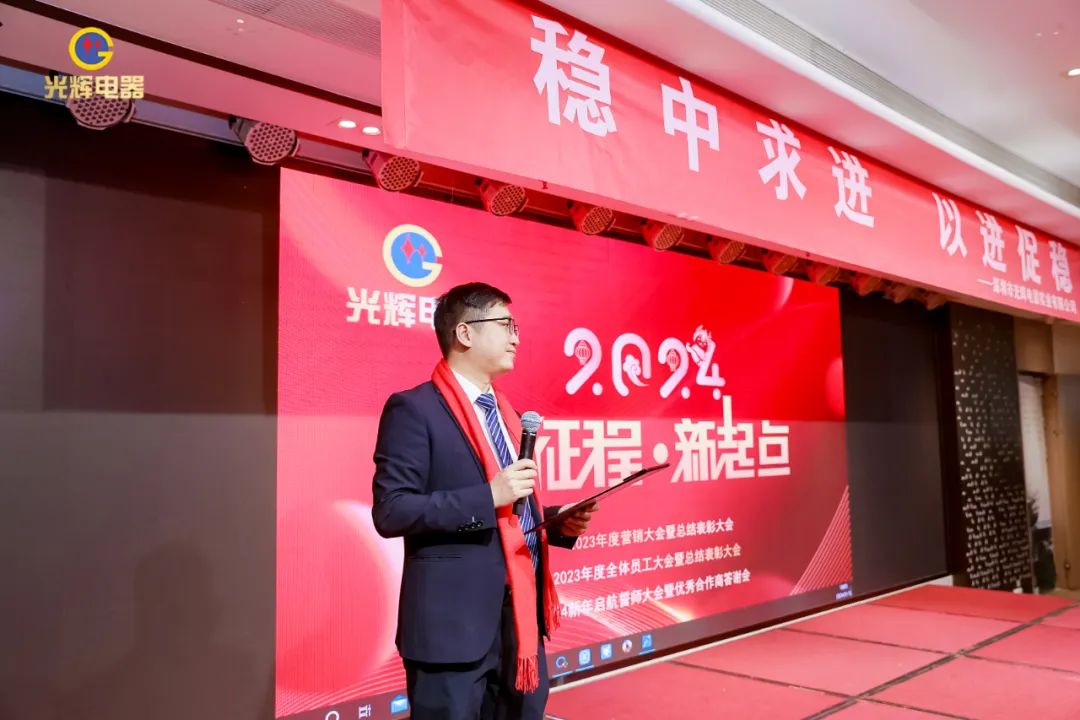 年會伊始,光輝公司董事長蔡宗光發(fā)表激情演講;執(zhí)行董事兼總經(jīng)理孫偉作2024年規(guī)劃;常務(wù)副總賀未作2023年工作總結(jié);他擲地有聲地向大家描繪了2024年全新藍圖;營銷中心總經(jīng)理沈文杰作2024年營銷中心工作部署。