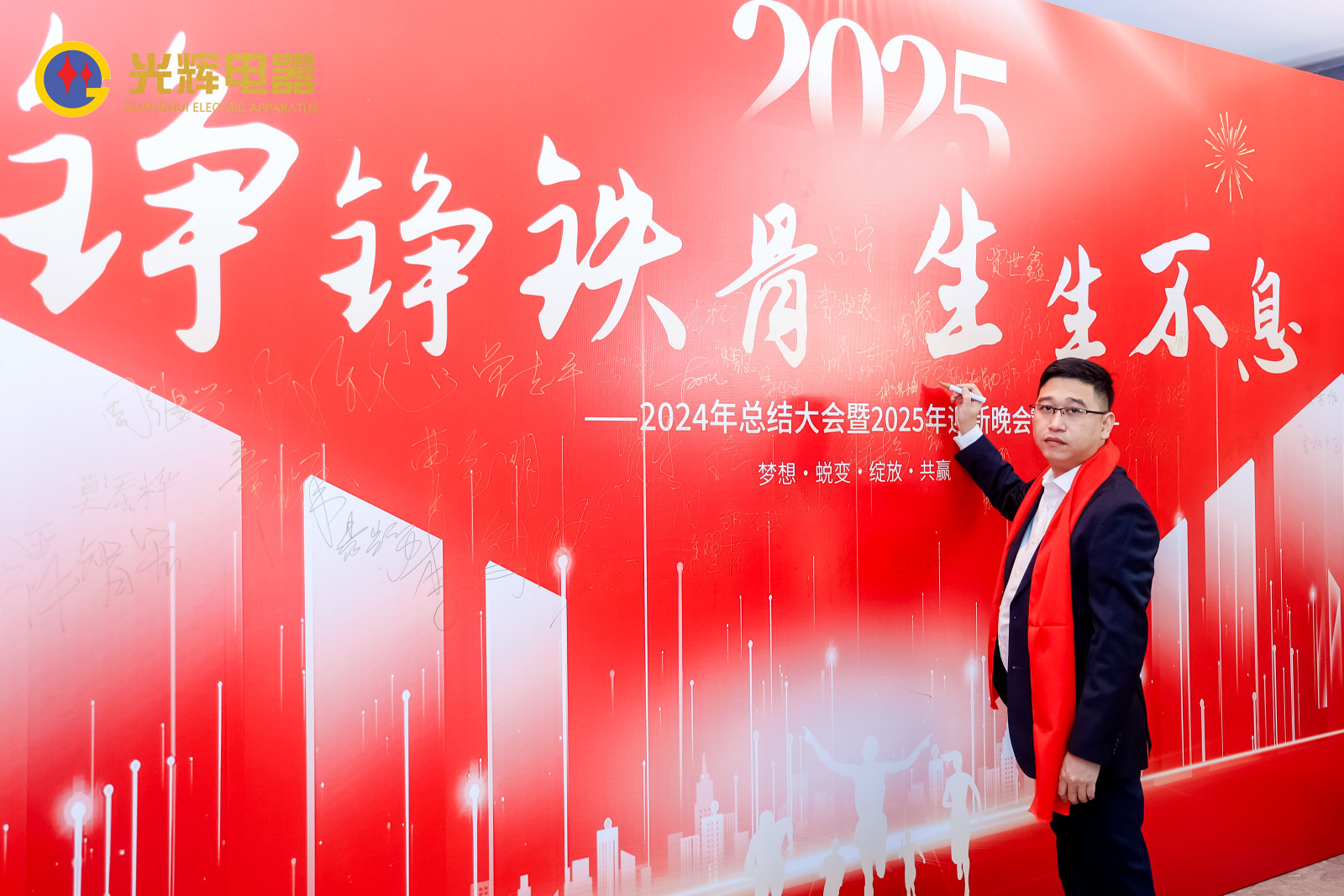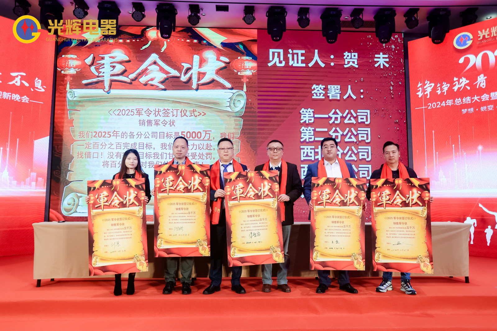 PART.05蓄勢待發(fā),亮劍出鞘,光輝電器團隊以必勝的信念簽下軍令狀,各個負責人誓勇?lián)敚磉_了光輝電器贏戰(zhàn)2025的決心,勇攀巔峰,全力沖刺年度目標!
