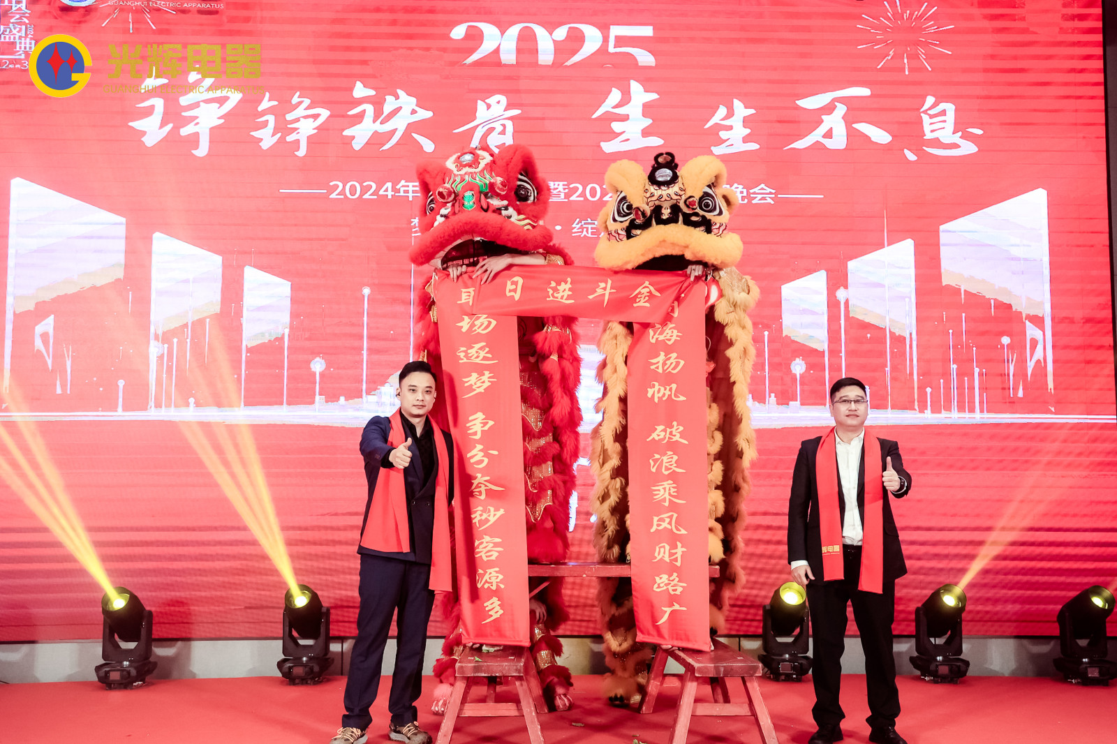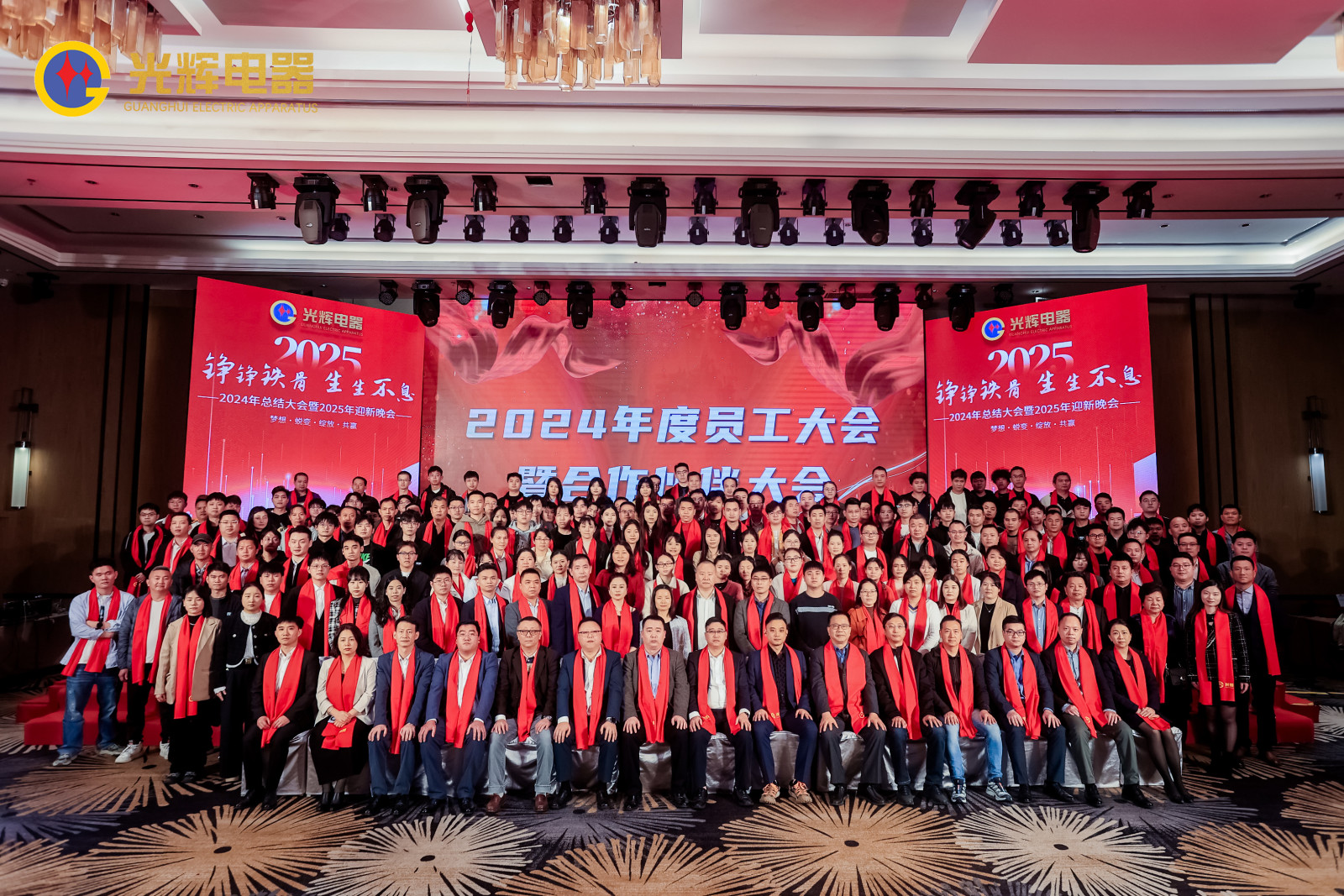 PART.03年會伊始,光輝電器董事長蔡宗光先生慷慨激昂的致辭,執(zhí)行董事孫偉先生對2025年公司發(fā)展做出了戰(zhàn)略規(guī)劃;總經(jīng)理賀未先生對2024的工作內(nèi)容進行總結(jié),對2025的工作進行全面部署;公司副總經(jīng)理兼營銷總經(jīng)理沈文杰先生對營銷中心工作進行總結(jié)以及部署。各位領(lǐng)導紛紛講話,號召光輝人人凝心聚力,共贏未來!